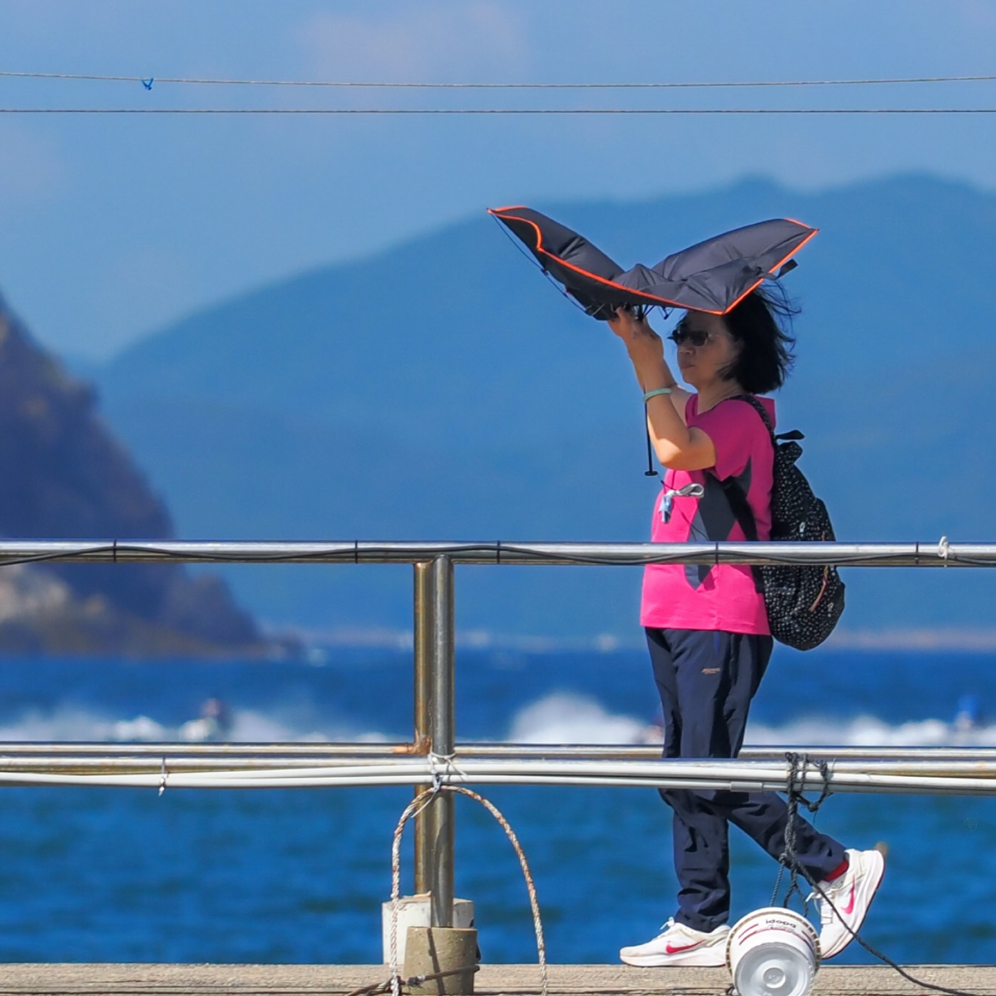 A windy stroll by the sea.