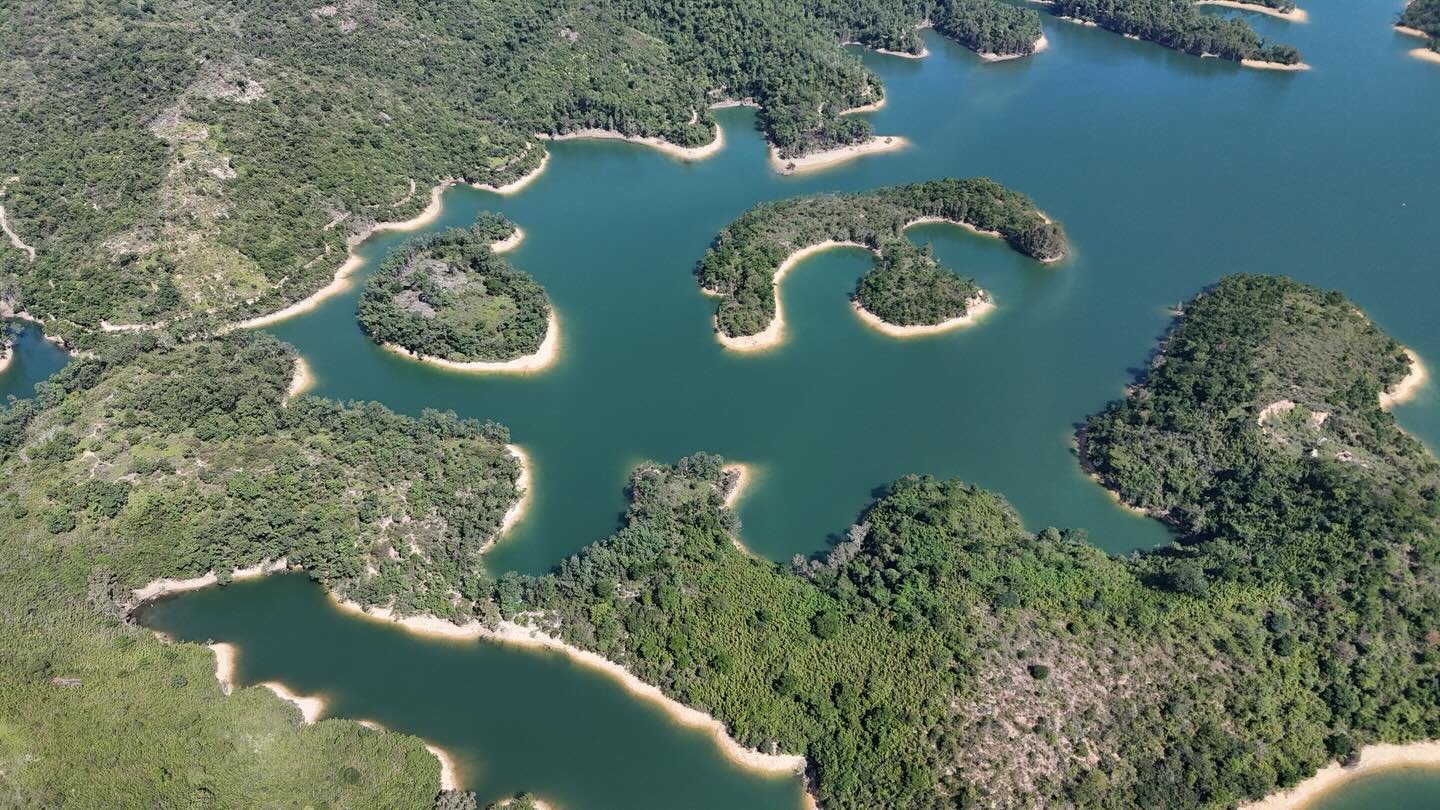 An arial view of the Tai Lam Reservoir Islands, also known as the Thousand Island Lake. A nice hike in the Tai Lam Country Park.