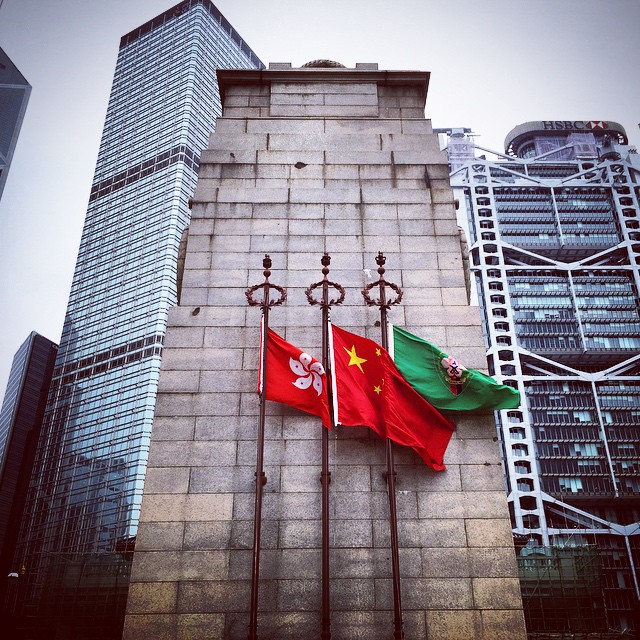 It’s RemembranceDay. In Hong Kong the Cenotaph flies the flags and at the base (not pictured) lie any red paper poppies