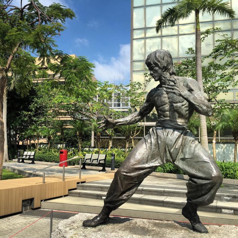 Since the Avenue of Stars is currently closed for construction work, the iconic BruceLee statue has been moved to