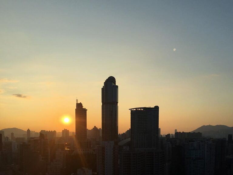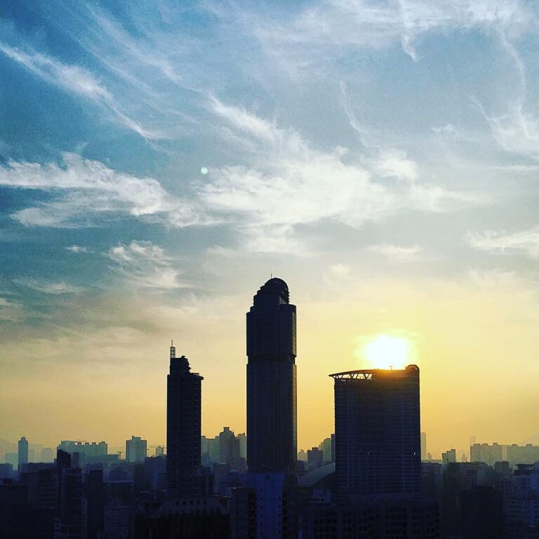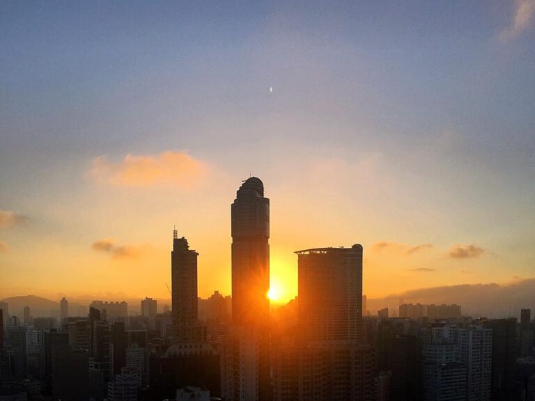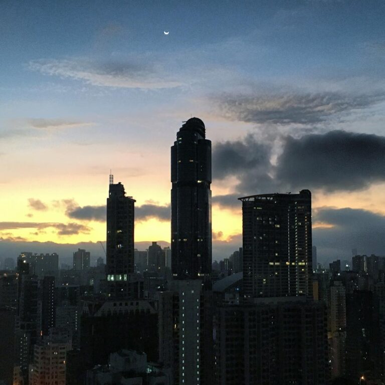 Early dawn over Mong Kok. langhamplace is dark against the break of morning. Can you spot the retreating crescentmoon?