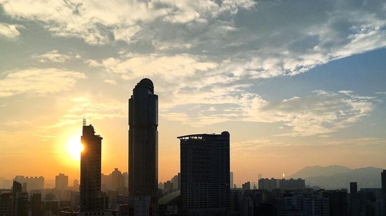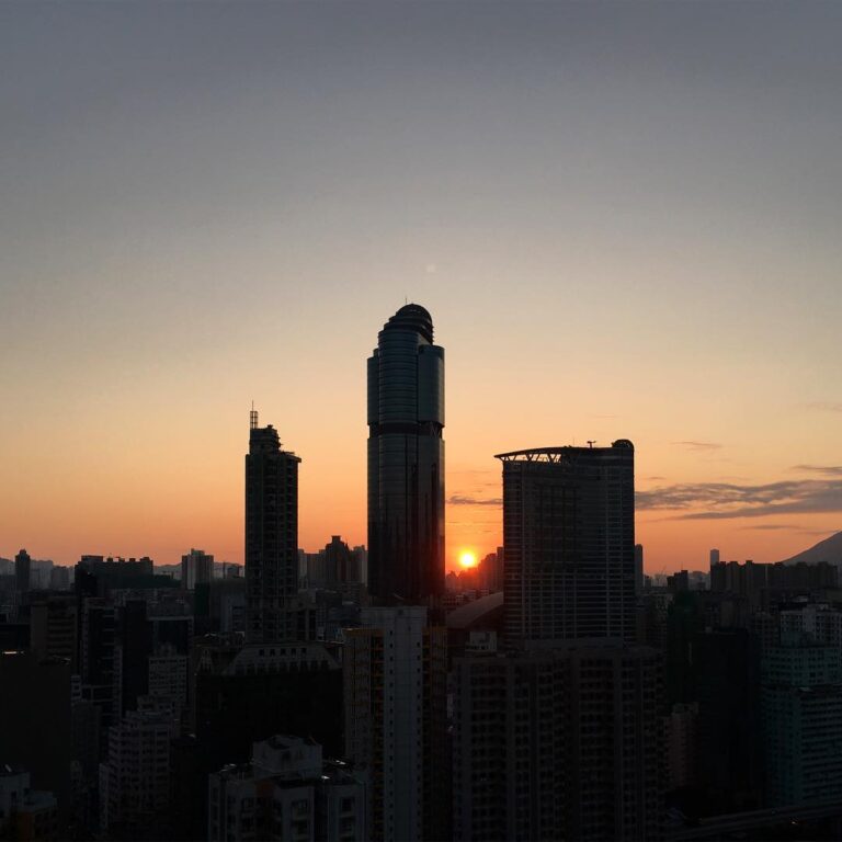ChineseNewYear 2016 morning. The dawn of the year of the FireMonkey. Mong Kok sunrise over LanghamPlace