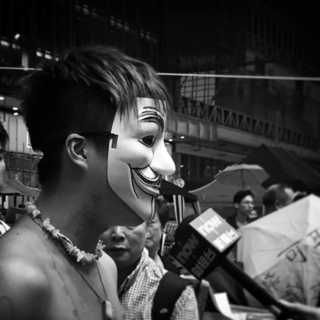 No image Marco Lee (Mar9Lee), performs with a beatboxer at OccupyHK Mong Kok. The beatboxing is done over the loudhailer
