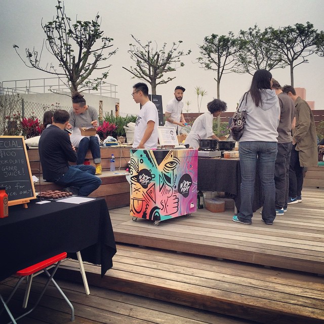 Ethiopian food, artisanal alcopops, hand-pour coffee and cold-press juice on a deck on the rooftop of an industrial