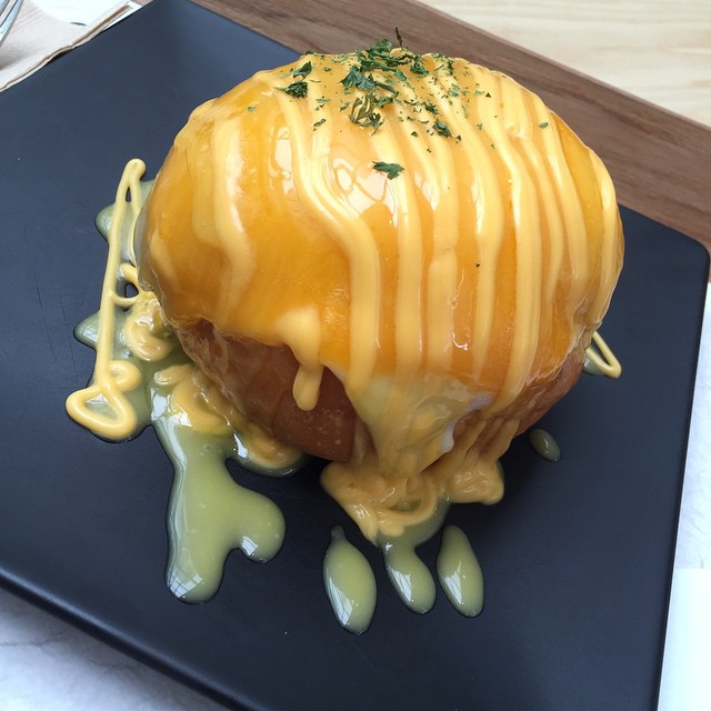 At Hanbing Korean Dessert Cafe – a Cheese and Garlic Ball. I thought it be puffy like a Puri but it’s a solid bun, total