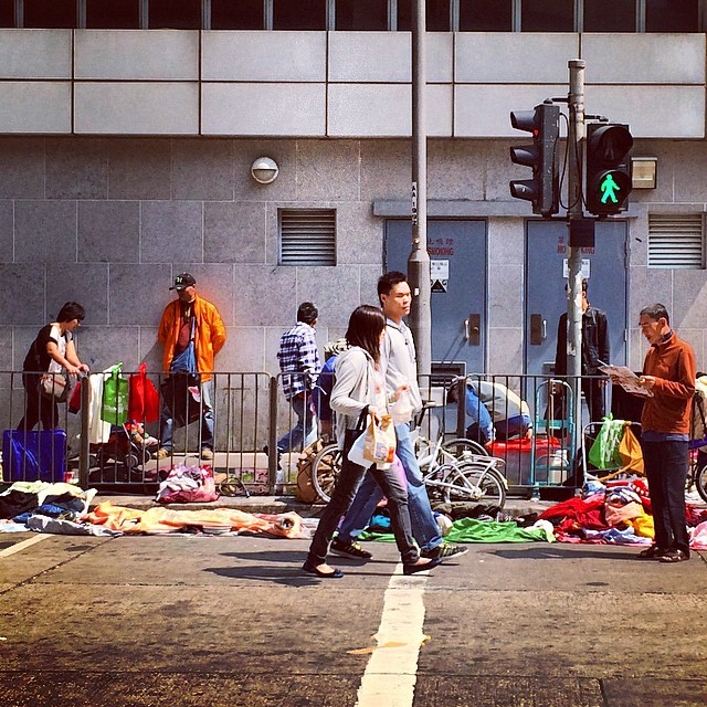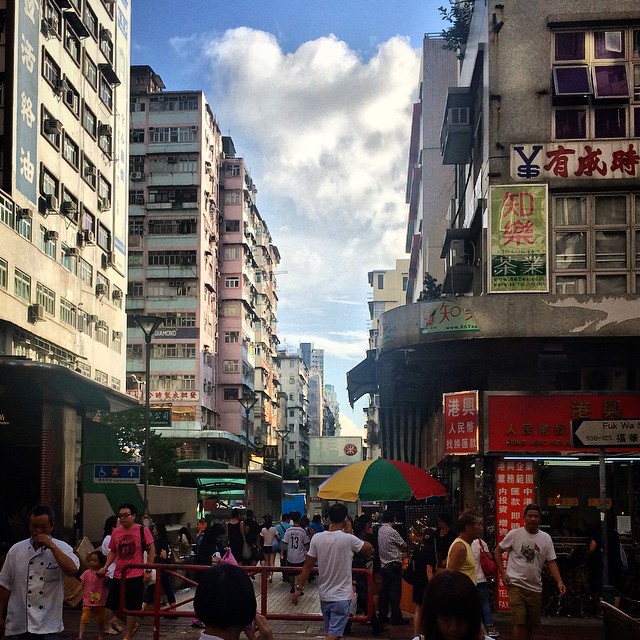 On the streets of shamshuipo – people walk, a man reads a newspaper and people flog stuff all over the street