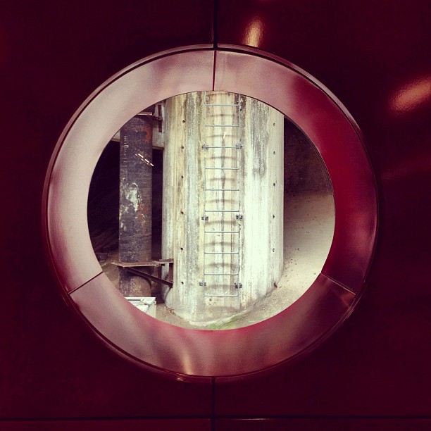 abstract view. porthole in an mtr station that just opens out to a… pillar? Odd