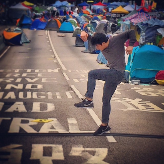 Walking around OccupyHK Admiralty and wandered into a guy dancing what looked to be a wildly energetic