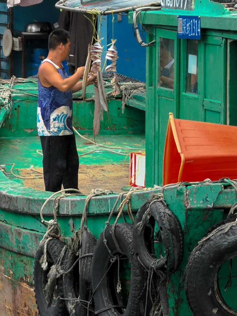 A fisherman at Aberdeen drying out his fish