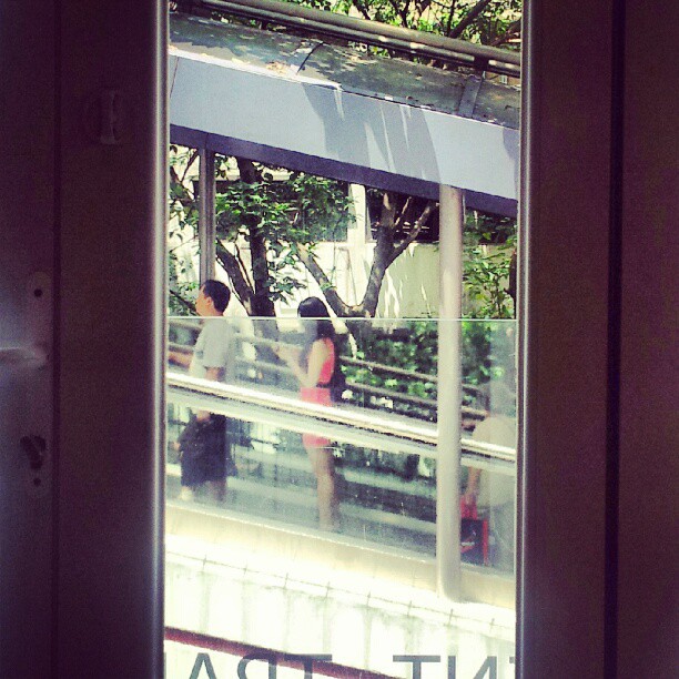 Still life of passersby on the Central Escalator