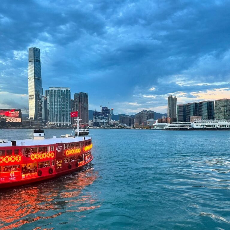 The Hong Kong Star Ferry, traditional and HKTB designs, on Victoria Harbour