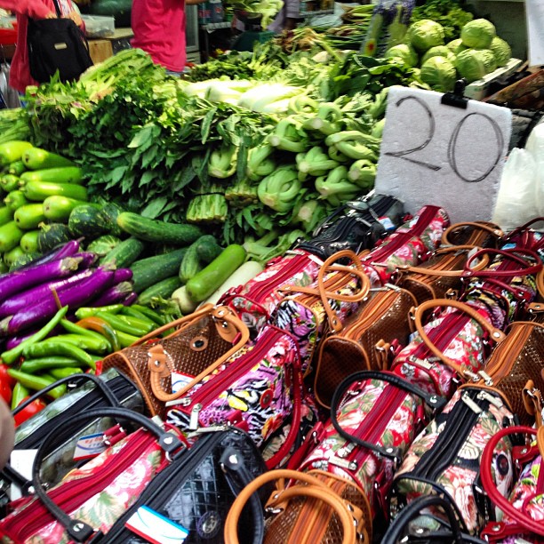 #handbags or #vegetables? tough #shopping choices on the #street #market of #hongkong. #hkig