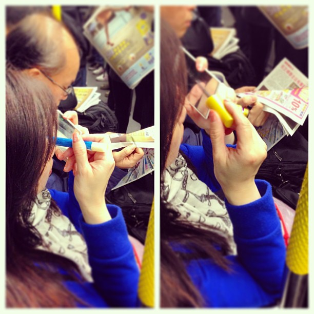 In a rush? Fret not just put on your makeup on the MTR. It’s just another Hong Kong morning commute