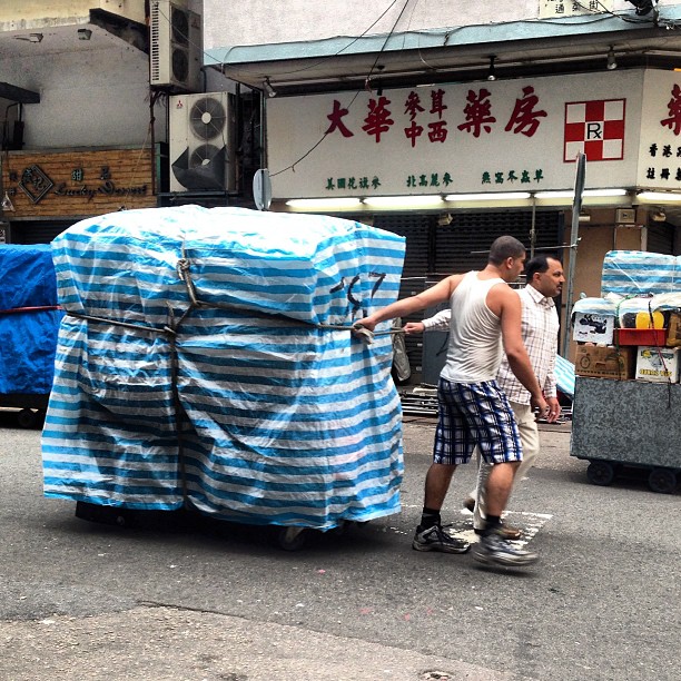 #street #market #traders of the #ladiesmarket in #mongkok pulling thier #stall / #cart to location. #hongkong #hk #hkig