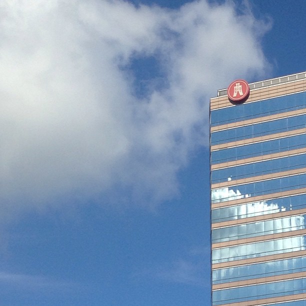 The #glass of the #hangseng #building casts #reflections of the #blue #sky and #clouds. #hongkong #hk #hkig