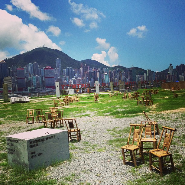 At M+ #inflation - scatters #bamboo #chairs with #hongkong island in the background. #hk #hkig