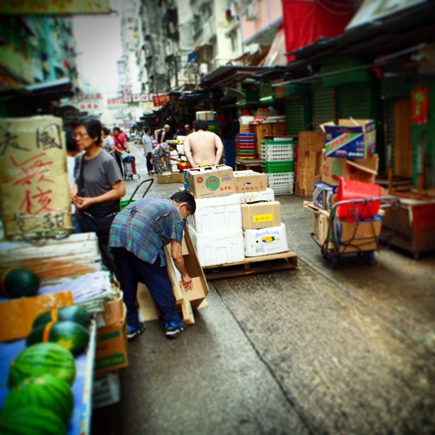 #market #stall owners transport #crates of fresh produce to their stalls. #hongkong #hk #hkig
