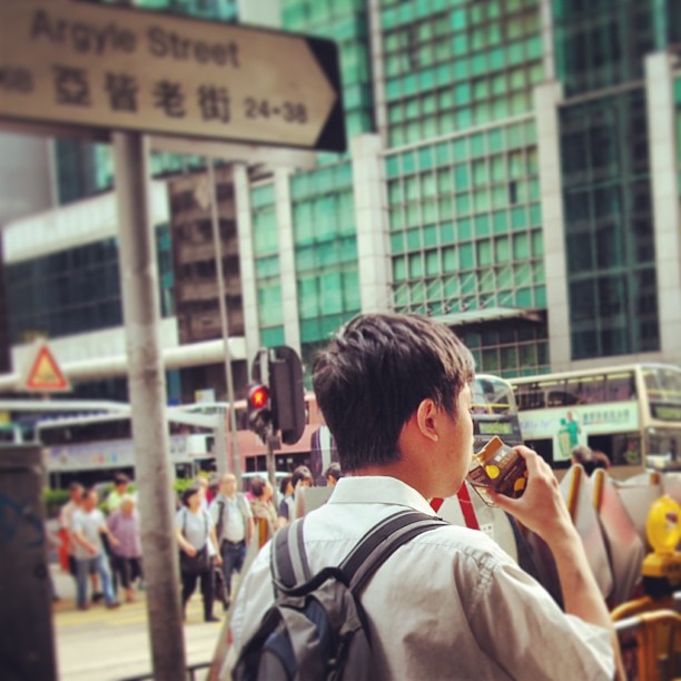 A #hongkong #morning - a #school #boy having #milk for #breakfast on the way to school. #hk #hkig