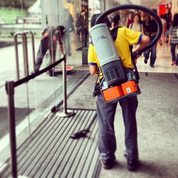 Not a #ghostbuster - #IFC #mall outfits their #sanitation #workers with #mobile #vacuum #cleaners! #hongkong #hk #hkig