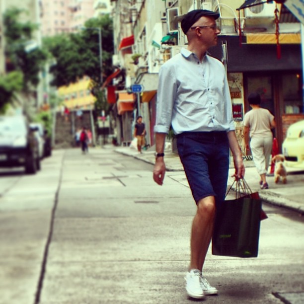 #mens #style in #hongkong - a #hipster in #poho. #sneakers and a #beret. #hk #hkig #fashion