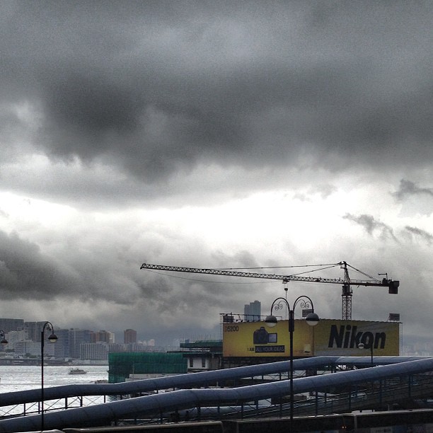The #nikon #advertisement on the #wanchai #ferry #pier ads a splash of colour in a #grey and #rainy day. #hongkong #hk #hkig