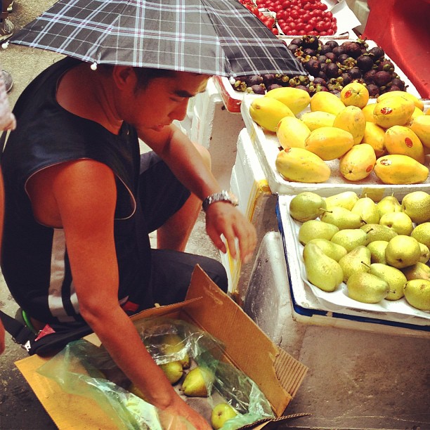 The #street #fruit seller and his #umbrella #hat. #kwuntong #hongkong #hk #hkig