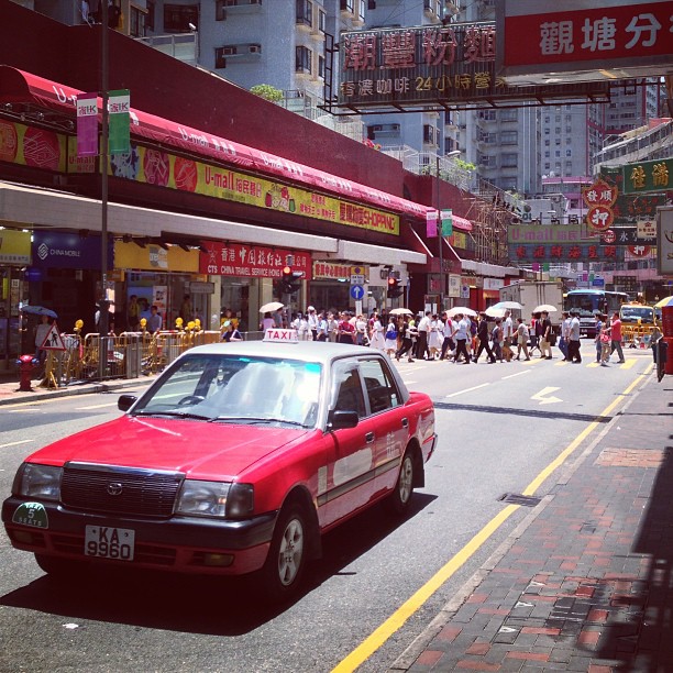 The iconic Hong Kong red taxi