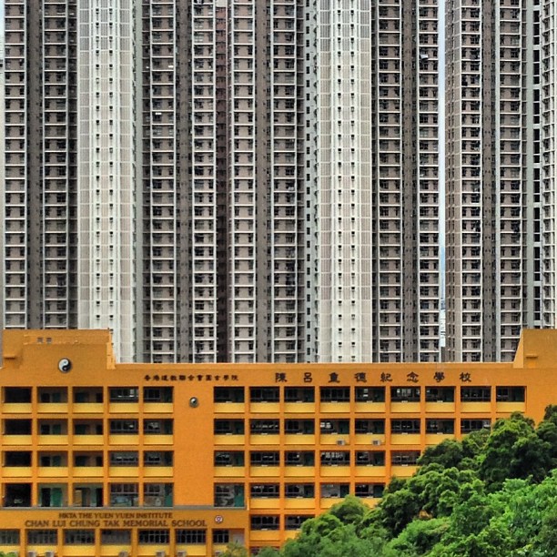 The incredible #density of #hongkong #apartments - a #school adds a dash of color and some greenery too. #hk #hkig