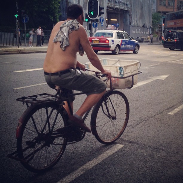 A #man on an old-school #delivery #bicycle goes about his business. #cyclist #hongkong #hk #hkig