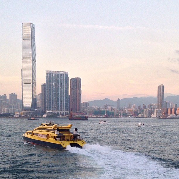 A warm #evening in #Kowloon - a #turbojet #ferry to #Macau leaves Shun Tak Centre. #hongkong #hk #hkig