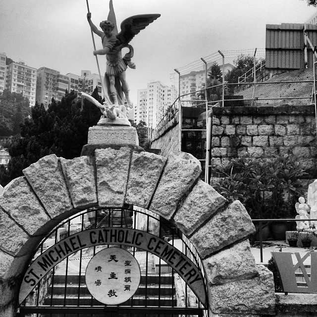 A #stone #angel guards the #gates of St. Michael's #Catholic #Cemetery. #hongkong #hk #hkig #mono