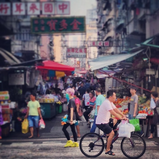 Generations in Passing - a young #lady and an old #cyclist pass each other in front of a #street #market in #mongkok. #hk #hongkong #hkig
