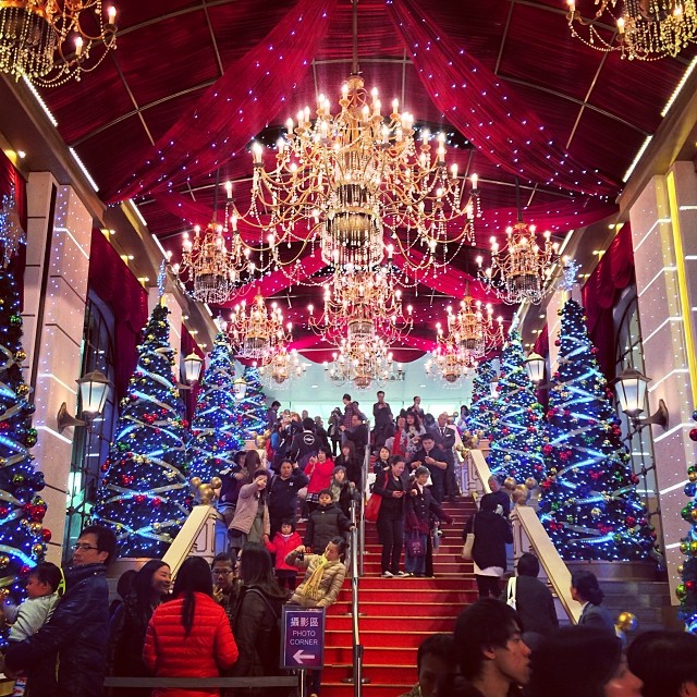 The #Christmas #decorations at #HarbourCity are in grand #royal style with red carpets and #chandeliers. #hongkong #hk #hkig