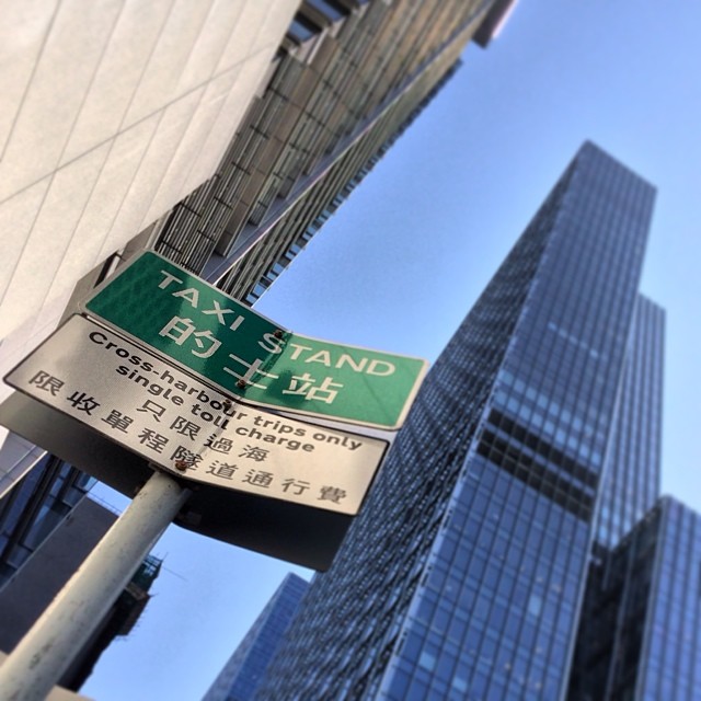 #Taxi stand with a #tower of #glass and #steel in the background. #hongkong #hk #hkig #taxistand