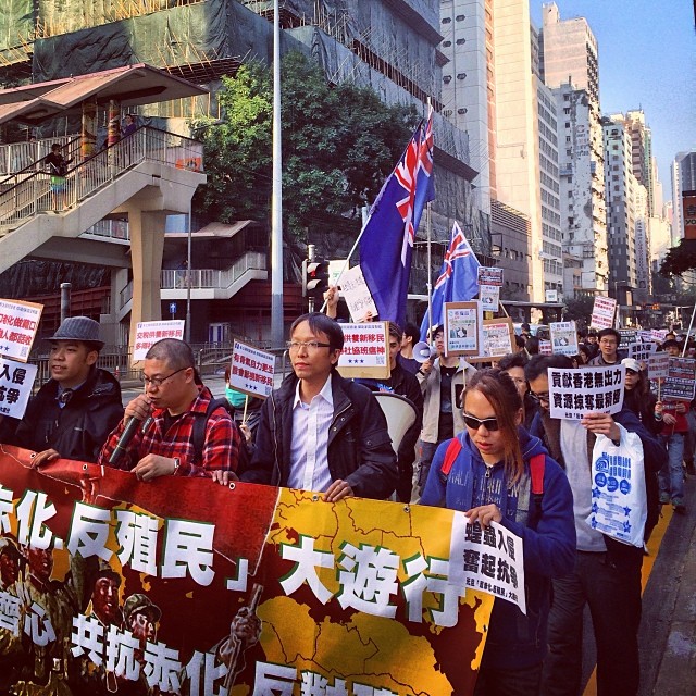 Waving #British #flags, they #march / #protest for #democracy in #hongkong (I think). #hk #hkig