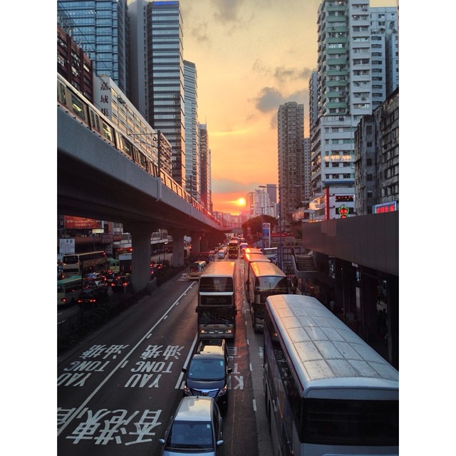 #perspective shot - a #KwunTong #sunset. #bus and #MTR take workers home at the end of the day. #hongkong #hk #hkig