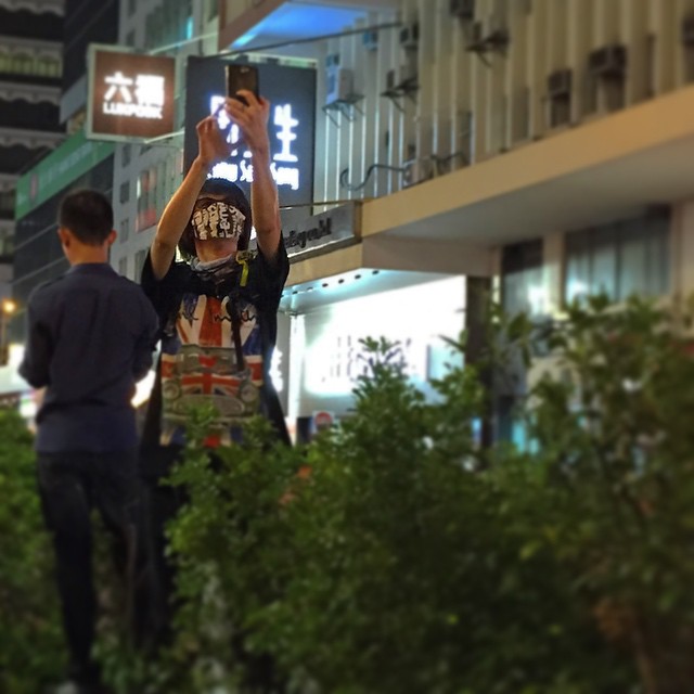 Civil disobedience? For this masked #protester, that calls for a #selfie! #OccupyHK #Mongkok #HongKong #hk #hkig