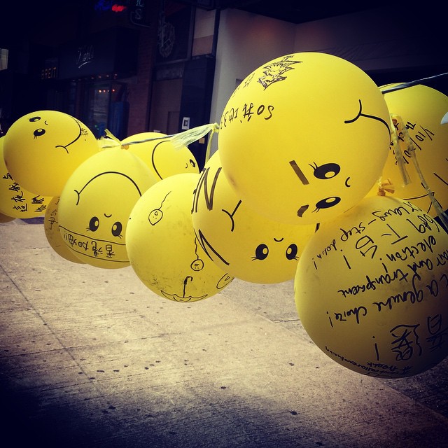 #yellow #balloons with messages of encouragement for #OccupyHK protestors strung up along #CausewayBay. #HongKong #hk #hkig