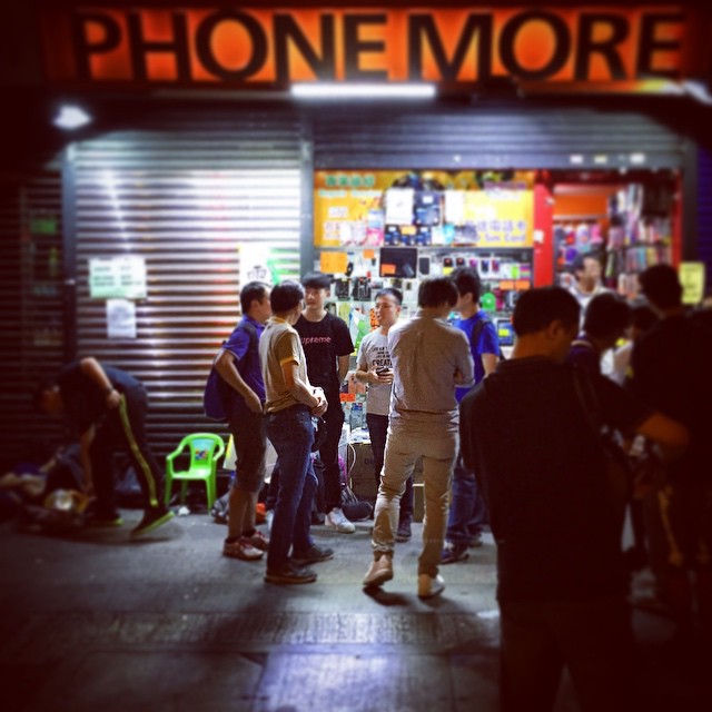 In the dead of night, a beacon of light. This small shop owner along #NathanRoad is still open at 12am and has set up a row of chargers outside his shop to allow #OccupyHK protestors to charge their phones. #Mongkok #HongKong #hk #hkig