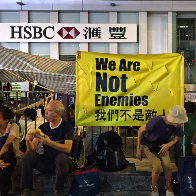HSBC is not your enemy? Well, no, the OccupyHK protesters are trying to tell you that they’re not the bad guys