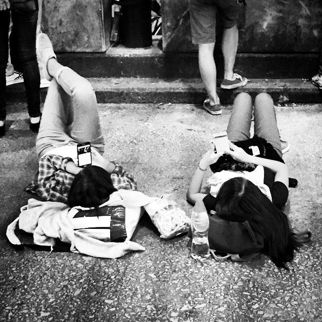#legs up - there's always time to layback and check your #smartphone... even if in the middle of #NathanRoad in #Mongkok during #OccupyHK. #mono #HongKong #hk #hkig
