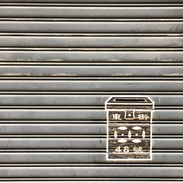 post-modern? (Get it? Heh.) art of a traditional Hong Kong letterbox painted on a store’s rollershutter. It lines up