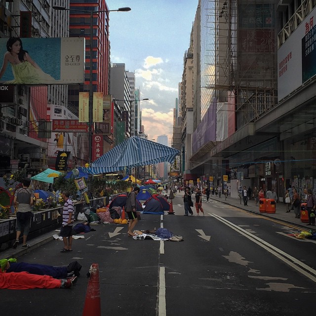 Day 31 of OccupyHK in Mong Kok. NathanRoad remains occupied at dawn. It’s been a month of occupation, a month since