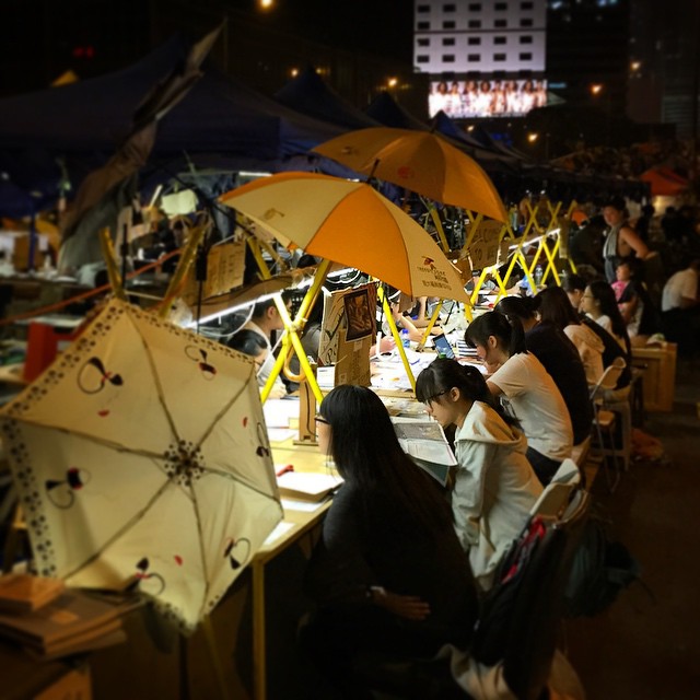 The amazing thing about the #OccupyHK study room on #HarcourtRoad in #Admiralty is not so much that there's a study room in the middle of the road but rather that the #students are actually #studying in it. They aren't goofing off, chatting or reading comics, they're actually doing homework and reading textbooks in there. Would that I were that studious. #HongKong #hk #hkig