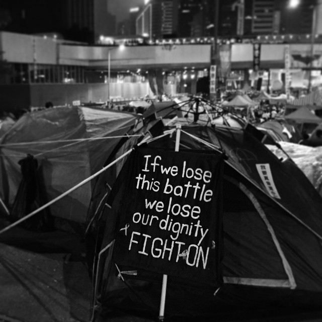 #OccupyHK battle sign at the protest #tent city in #Admiralty. #mono #HongKong #hk #hkig