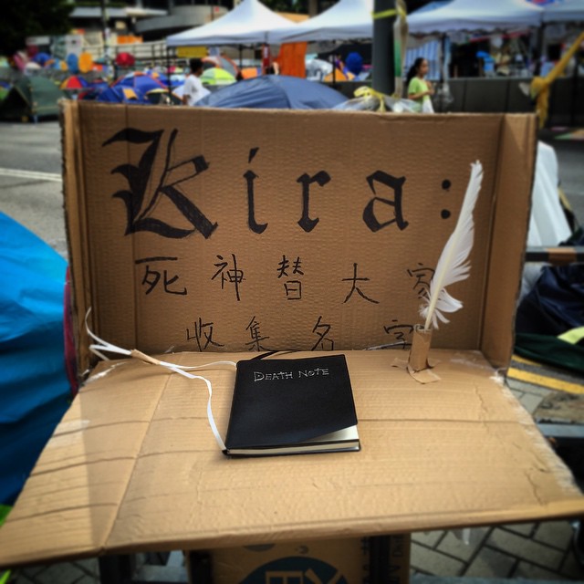 Walking around #OccupyHK #Admiralty also has its moments of #WTF - here some one has set up a #DeathNote stand. Who will *you* write in it? #HongKong #hk #hkig