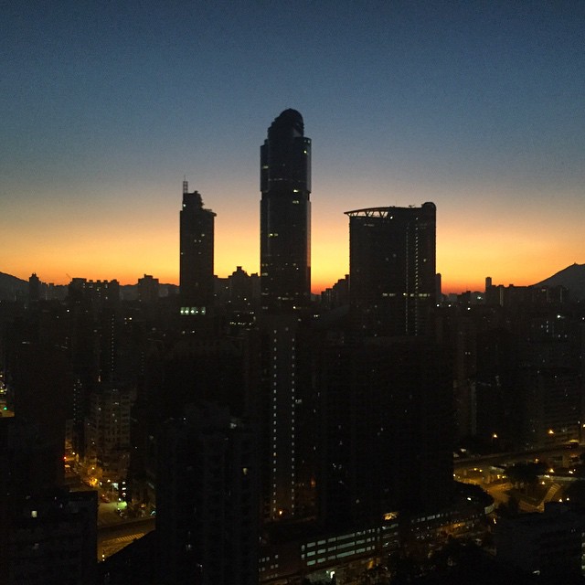 nofilter – a beautiful Mong Kok sunrise this winter morning. That short slice of time when night transitions to day: you
