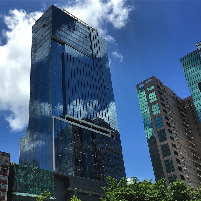 #buildings of #glass and #steel in #KwunTong. Like #camouflage for buildings, blending into the blue #sky. #HongKong #hk #hkig