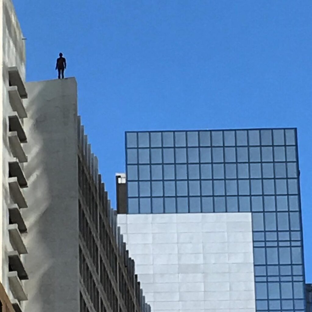 #LookUp it's a #jumper! Nope, it's #installationart all over #Central #hongkong. It's #EventHorizon by Brit artist #AntonyGormley. 31 #statues, life sized, are installed on #rooftoops and streets all over Central and western Hong Kong. #HK #HKIG #art