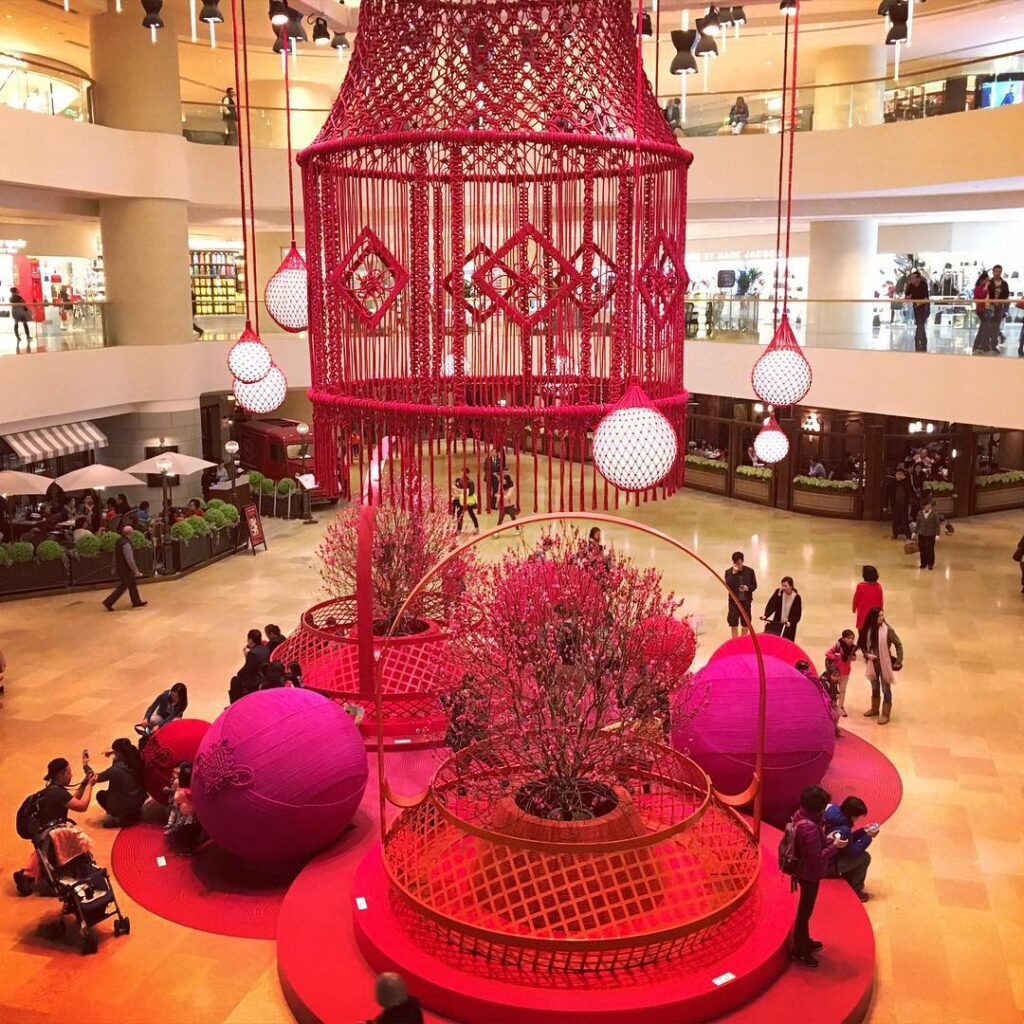 PacificPlace mall in Hong Kong has gone with giant balls of yarn for their ChineseNewYear decorations